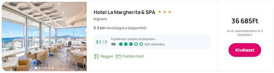 Szardínia 3 napos wellness pihenés 56.415 Ft. Alghero repülővel + Hotel reggelivel
