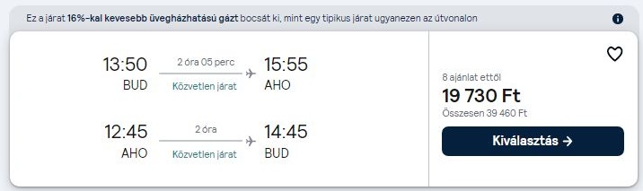 Az árak a megosztás pillanatában érvényesek, mivel az olcsó repülőjegyekből csak minimális darab áll rendelkezésre egy adott időpontra. A légitársaságok a szabad helyek függvényében módosíthatják áraikat. A repülőjegy ára a legalacsonyabb kategóriára vonatkozik és tartalmaz 1 ingyenesen felvihető kisméretű kézitáskát/hátizsákot. További részletek a légitársaság weboldalán.
