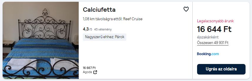 Repülőjegy + szállás reggelivel = 42.365 Ft/fő