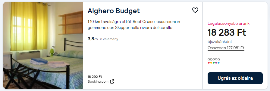 Olcsó 8 napos nyaralás tippek Algheroba repülővel, szállással, több olcsó időpontban:
