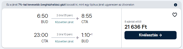 Az árak a megosztás pillanatában érvényesek, mivel az olcsó repülőjegyekből csak minimális darab áll rendelkezésre egy adott időpontra. A légitársaságok a szabad helyek függvényében módosíthatják áraikat. A repülőjegy ára a legalacsonyabb kategóriára vonatkozik és tartalmaz 1 ingyenesen felvihető kisméretű kézitáskát/hátizsákot. További részletek a légitársaság weboldalán.