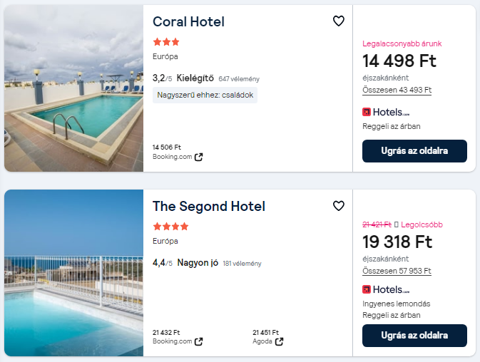 *A repülőjegy árakat és a szállásokat a gombokra kattintva ellenőrizheted.