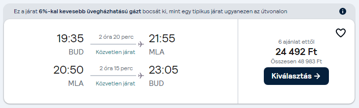 Repülőjegy + szállás reggelivel = 46.240 Ft/fő