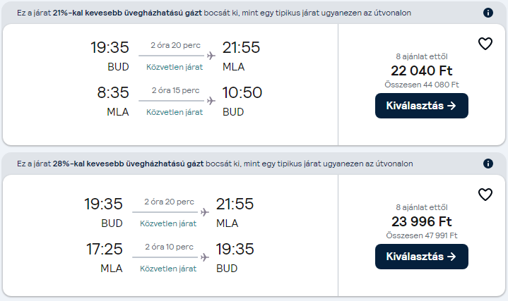 Az árak a megosztás pillanatában érvényesek, mivel az olcsó repülőjegyekből csak minimális darab áll rendelkezésre egy adott időpontra. A légitársaságok a szabad helyek függvényében módosíthatják áraikat. A repülőjegy ára a legalacsonyabb kategóriára vonatkozik és tartalmaz 1 ingyenesen felvihető kisméretű kézitáskát/hátizsákot. További részletek a légitársaság weboldalán.