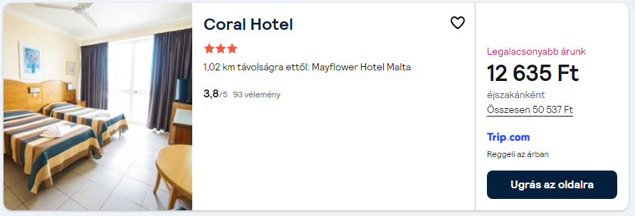 Repülőjegy + szállás reggelivel = 47.310 Ft/fő