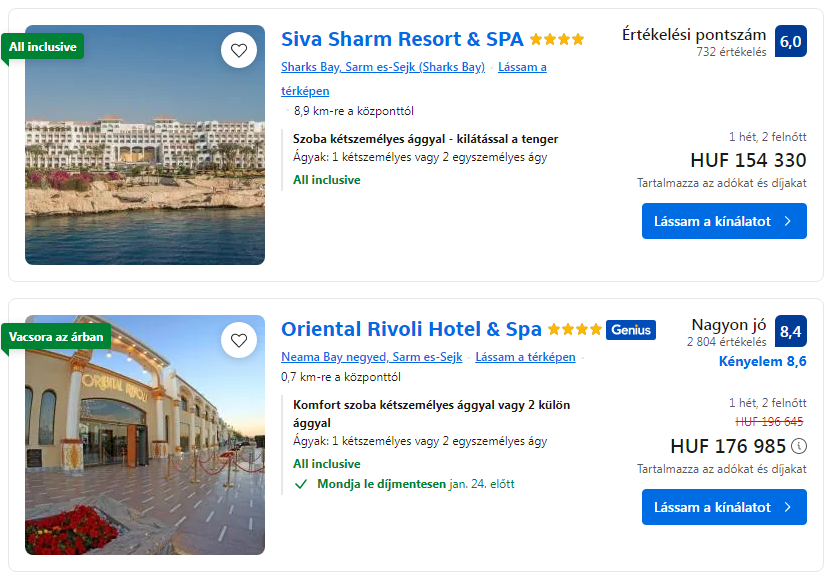 *A repülőjegy árakat és a szállásokat a gombokra kattintva ellenőrizheted.