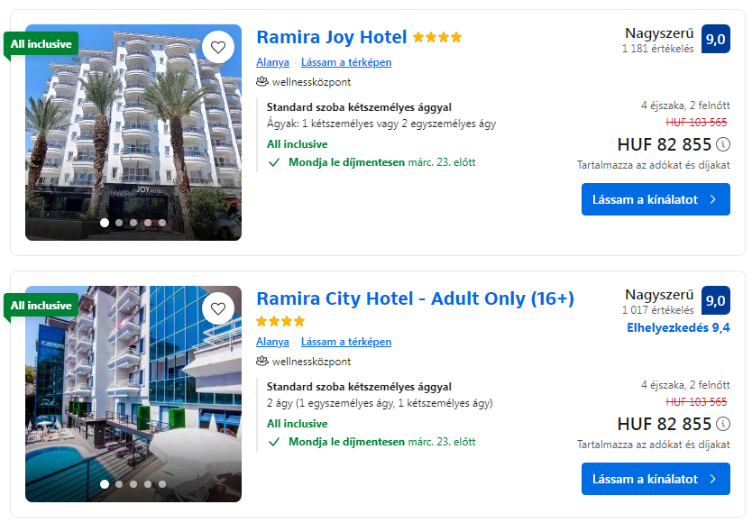 Repülőjegy + All Inclusive Hotel = 74.225 Ft/fő