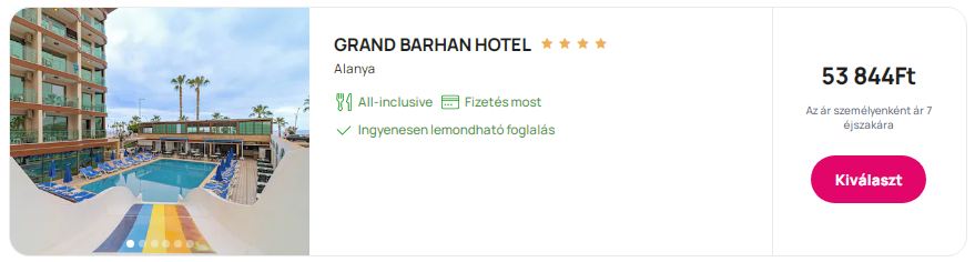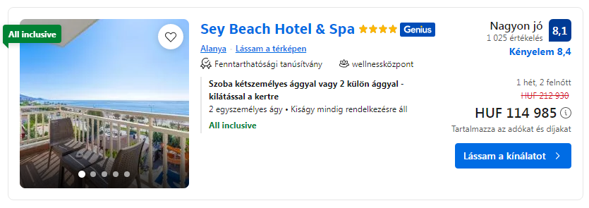 Repülőjegy + All Inclusive Hotel = 98.065 Ft/fő