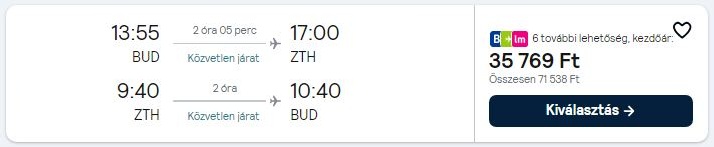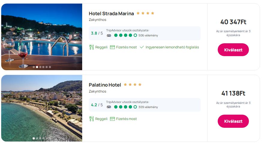Repülőjegy + szállás reggelivel = 76.115 Ft/fő